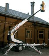 Прицепной подъемник Dinolift 120 T оборудован электрическим двигателем. Основное преимущество данных моделей заключается в возможности буксировки по общественным дорогам в качестве обыкновенного прицепа. Передвигаться в пределах рабочей площадки за счет специально установленной системы движения подъемник в состоянии, не прибегая к помощи буксира. Основание подъемника способно вращаться вокруг своей оси, тем самым повышая производительность и удобство работы. Прицепные подъемники можно использовать как внутри помещений, так и при наружных работах. Они применимы при монтажных и отделочных работах, в обслуживании на высоте, при монтаже рекламных вывесок, щитов и т.п. В определенных обстоятельствах прицепной подъемник может послужить заменой автовышки. Рабочая высота прицепного приемника данной модели составляет 12 метров. Горизонтальный вылет стрелы возможен на 7,9 метров. Dinolift имеет грузоподъемность 120 килограммов. При этом всё устройство весит 1275 кг и способно преодолевать подъем до 25 процентов. Длина подъемника составляет 5,52 метра, ширина – 1,71 метра. Высота подъема платформы составляет 10 метров.